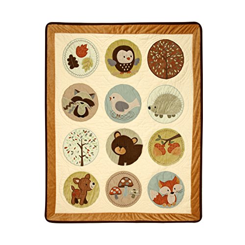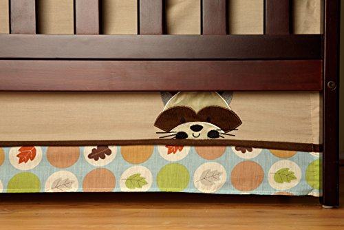-. Feature : 4pc crib set fits a standard size crib mattress 28" x 52". Appliqued Comforter measures 36" x 45". Dust ruffle features a combination of animal and floral P.R.Ints with a 14" drop. / Crib sheet is 100% cotton. Most fabrics are a blend of 35%C/65%P. / Machine wash separately in cold water, gentle cycle. Use only non-chlorine bleach when needed. Tumble dry on low heat. Iron on low heat when needed.
