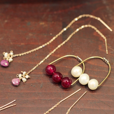 약6mm정도의 루비마노와 진주로 제작해드리구요 옵션에서 원석 선택해주시면 제작해드립니다