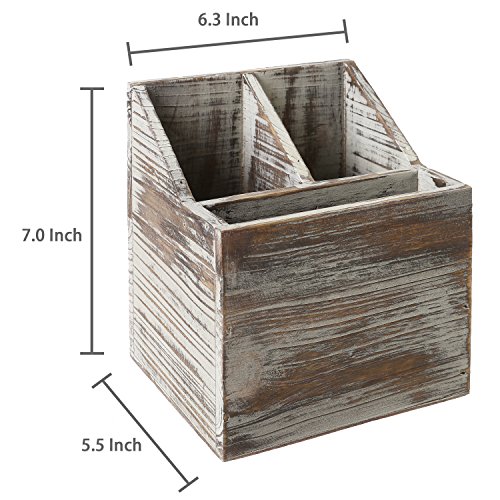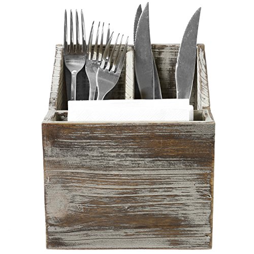 3-Compartment Rustic Wood Tabletop Flatware, Utensil Caddy Organizer and Napkin Holder