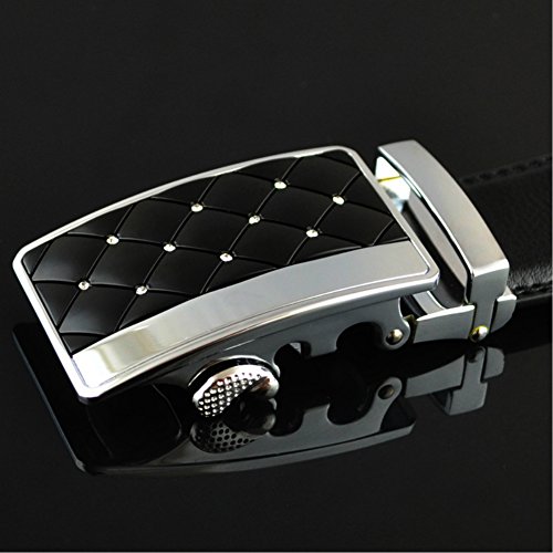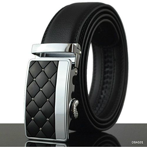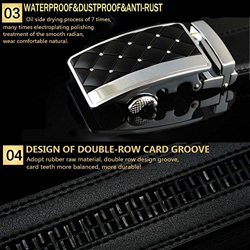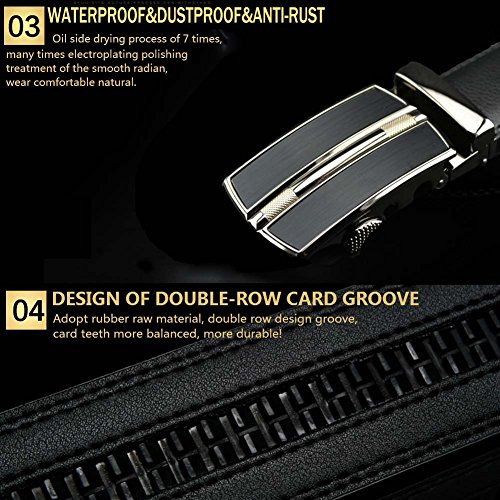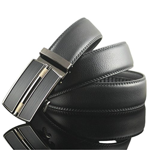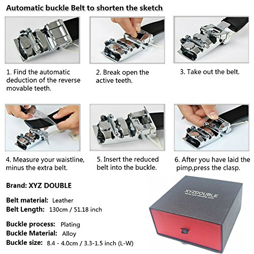 -. Title : XYZDOUBLE Men's Leather Belt Sliding Buckle Black Automatic Ratchet with Gift Box-35mm Wide