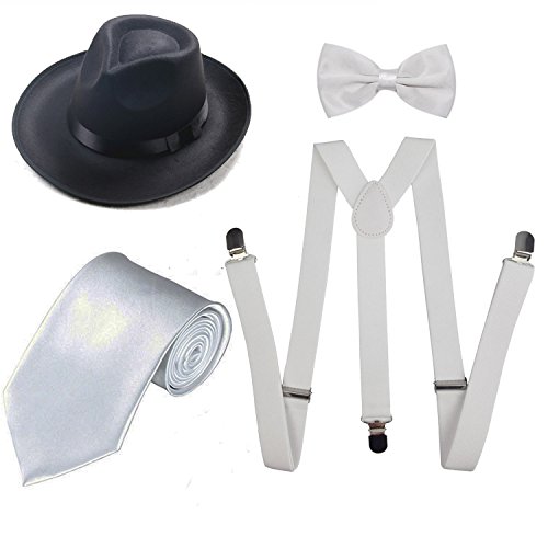 | (ZeroShop)/Accessories/Suspenders Cummerbunds/DIRECT FROM USA/1920s Mens Accessory Set Manhattan Fedora Hat, Suspenders Y-Back Elastic Trouser Braces,Pre Tie... |