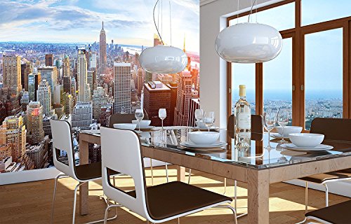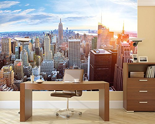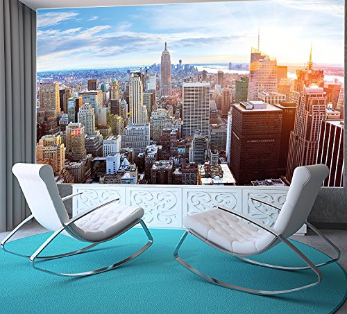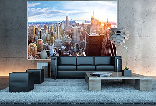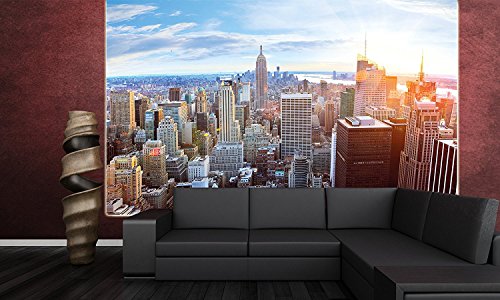 New York penthouse skyline photo wallpaper – Manhattan panorama view mural – XXL poster New York wall decoration 55 Inch x 39.4 Inch