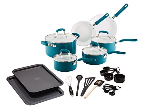 -. Title : Guy Fieri 25 Piece Ceramic Nonstick Aluminum Cookware Set, Large, Turquoise