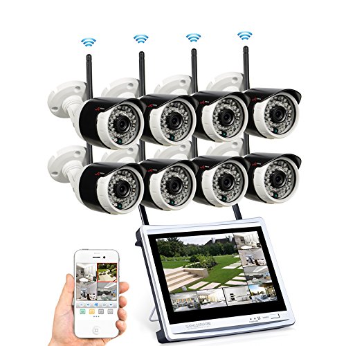 Security Camera Wireless Home Video Surveillance System with 8 Units 720p HD Wireless Smart Home Day Night Cam 12 Inch LCD Monitor NVR NO HDD ARCECUT Wifi NVR Kits