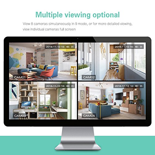 ★ 720p resolution: The 1.0 MP provide you with the sharp and crisp image day and night .The 8 Full HD cameras with 65ft night vision, the 3.6mm lens provide you 75 degree viewing angle.IP 66 Weatherproof Housing, can be used indoors and outdoor. Monitor your home and property with this wireless 8 channel video security system.