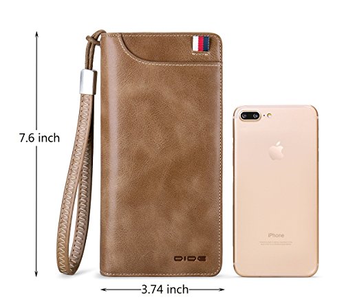 -. Feature : Top layer genuine cowhide leather.Minimalist Vintage Cowhide Leather Purse With high qualiy hardwares with Wrist strap and zipper pocket / Wallet Size: about 7.5*3.74*0.8 inch, convenient to carry / CAPACITY: 10 card slots, 1 ID window, 1 big bills pocket, 1 cellphone pockte, 1 Cash . / SECURE&EASIER TO CARRY:Leather hand strap on the side that makes it much easier to carry, the zippers sturdy, the high quality leather smells nice and handle are well secured.and is made of strong and durable material and Wrist Strap very easy to carry. / PERFECT GIFT FOR LOVED: DIDE men's handbag is a perfect gift for your friends, father, brothers. Also for Groomsmen, Birthdays, Christmas, Anniversaries, Father's Day, Valentines Day, and other Special Occasion.