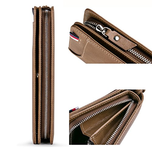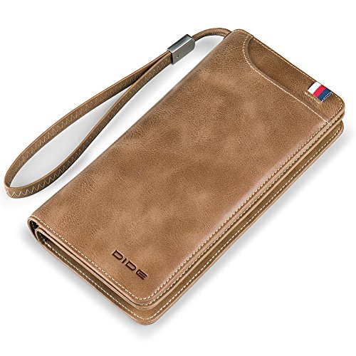 -. Title : DIDE Men's Clutch Bag Handbag Long Wallet Business Leather Wallet Money Clip Zipper Cellphone case(Khaki)