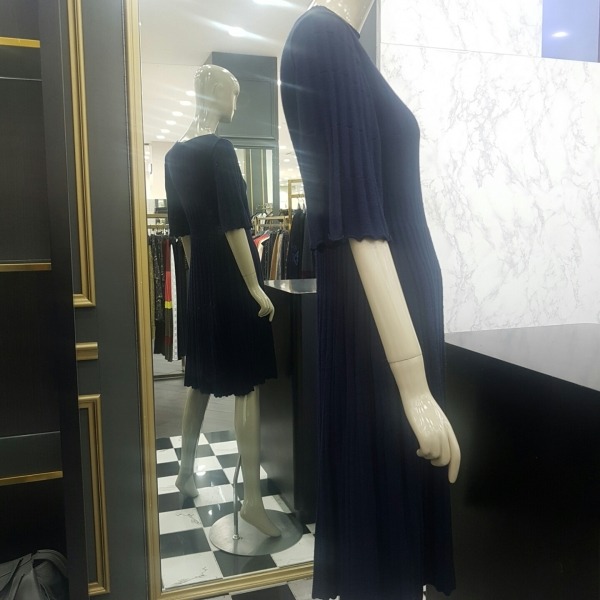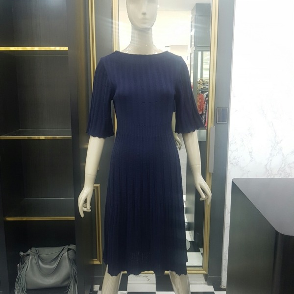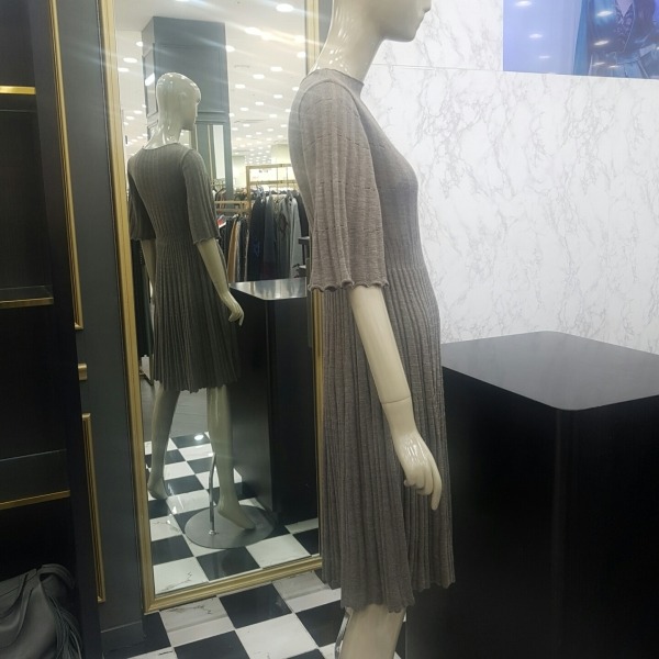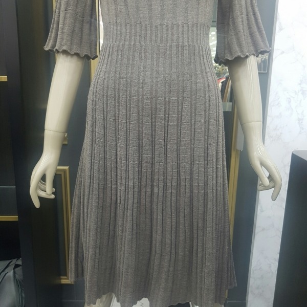 골지 느낌의 플리츠 플레어 니트 원피스로 여성스러우며 편안한 핏의 니트 원피스입니다