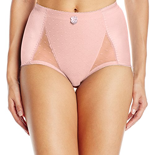 -. Feature : Natural waist brief style / Pin-up dot mesh across tummy / Soft cotton panel against tummy / Stay-in-place soft brushed elastic waistband / Full coverage brief with butt lifting back seam