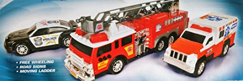 -. Title : 3-in-1 Emergency Vehicle PlaySet, Fire Truck, Police Car, Ambulance w/ Road Signs, Lights and Sounds