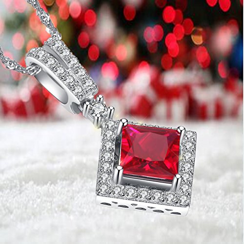 The radiant sterling silver necklace feature a vantage princess cut that is surrounded by simulated gem, and then fitted with a centerpiece of simulated emerald, simulated ruby; making it a wonderful addition to your own jewelry collection or a thoughtful present for friends or family members.
