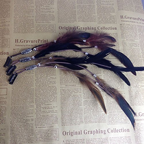 Set of 3 Handmade Boho Hippie Hair Extensions with Feather Clip Comb Headdress Hairpin DIY Accessories for Women Lady Girls