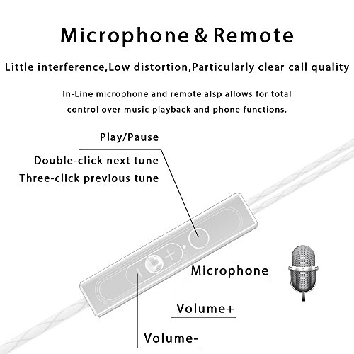 BEST WHITE EARBUDS. EARPHONES WITH MIC MICROPHONE WITH REMOTE - The Built-in hands-free microphone allows you to easily enjoy uninterrupted music or talk on your phone everywhere. The multifunctional button will control volume +/-, answer/end calls. The sound of sports headphones is CLEAR and CRISP IN 2017 EARBUDS.