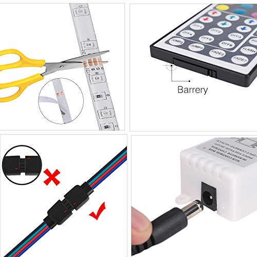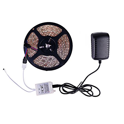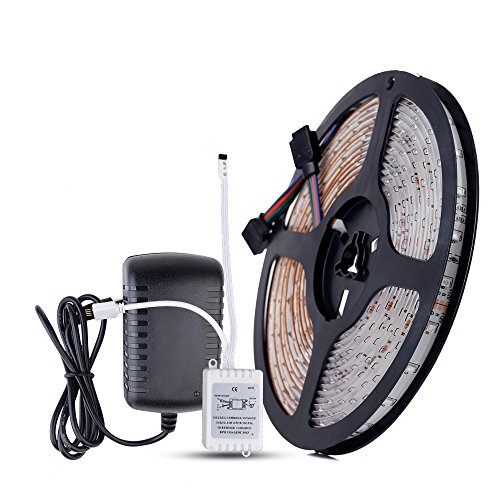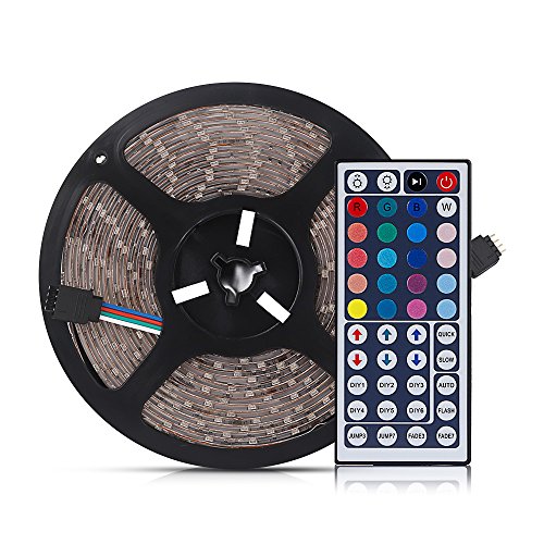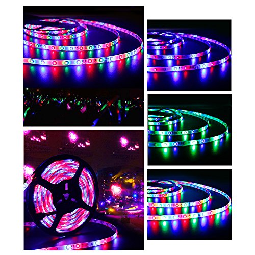 ELlight Flexible RGB LED Light Strip, SMD 3528 16.5ft(5m) 300leds, Water Resistant IP65 LED Strip Light Come with 44Keys Remote Controller and 12V 2A Power Adapter