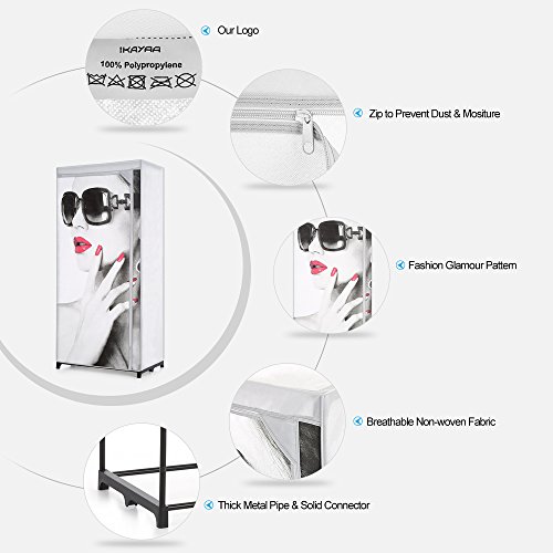 -. Title : IKAYAA Portable Fabric Closet Wardrobe Cabinet Garment Clothing Storage Organizer with Shelves
