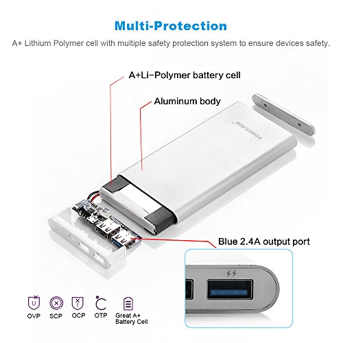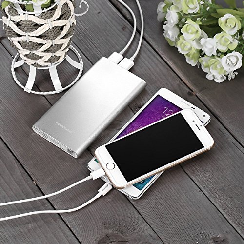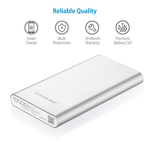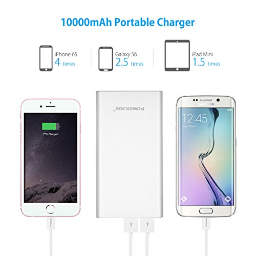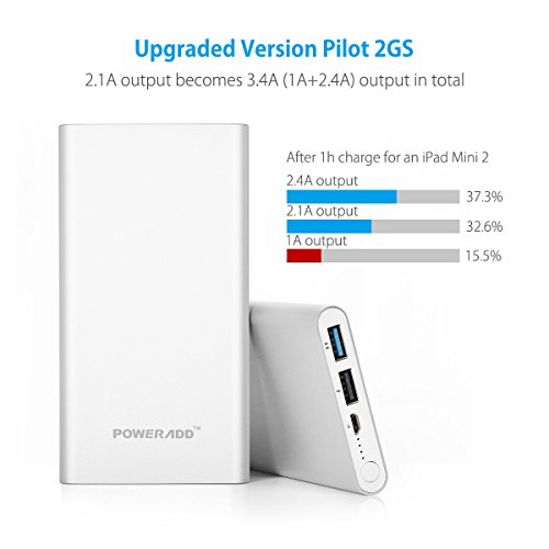 [Upgraded] Poweradd 2nd Gen 3.4A Pilot 2GS 10,000mAh Dual USB Portable Charger External Battery Pack with High-Speed Charge for iPhone iPad Samsung Galaxy and More - Silver (Apple Cable Not Included)