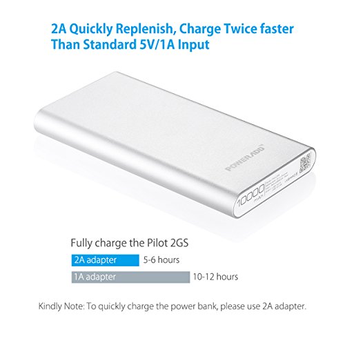 Upgraded Charge - Auto detect your device and deliver its fastest possible charge speed up to 2.4A at most once connected (3.4A total), 5V/2A input is twice as faster than 5V/1A input; which means you could fully charge the Pilot 2GS in only 5 hours.