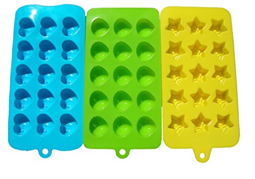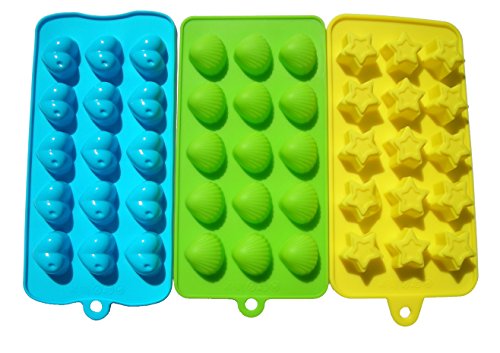 - TRIPLE PACK - Pack includes: one green Seashells mold tray, one yellow Stars mold tray, and one blue Hearts mold tray. You will receive three different shape molds to make unique candy, chocolate, ice cubes, jello, soap, or crayons.