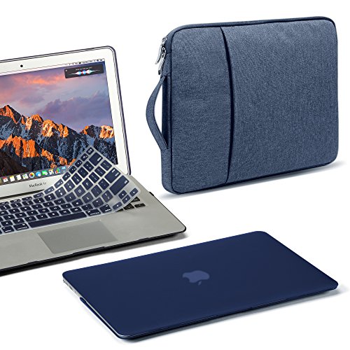 -. Binding : Electronics -. Brand : GMYLE -. Color : Denim Blue -. EAN : 5060514411001 -. Feature : High quality hard coating. Protects your Macbook from accidental hard knocks and scratches. / Simple clip-on/off design without the added risk of harming your laptop during application / Enhanced portability with a handle for carrying your laptop anywhere / Extra front pocket to store accessories for your schooling and business life / New and High Quality keyboard silicon cover for Macbook Air 13 inch (A1369/A1466) -. Label : GMYLE -. Manufacturer : GMYLE -. Model : NPL530037 -. MPN : NPL530037 -. PackageQuantity : 1 -. PartNumber : NPL530037 -. ProductGroup : PC Accessory -. ProductTypeName : CARRYING_CASE_OR_BAG -. Publisher : GMYLE -. Studio : GMYLE -. Title : GMYLE 3 in 1 Bundle Navy Blue Soft-Touch Frosted Hard Case for Macbook Air 13 inch (A1369/A1466), Water Repellent Laptop Sleeve with Handle and Pocket and Navy Blue Silicon Keyboard Cover [US layout]