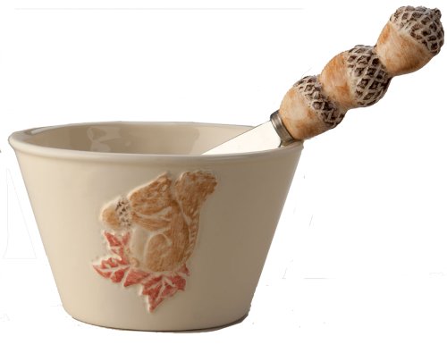 October Hill Hand Painted Spreader and Bowl Set, Squirrel