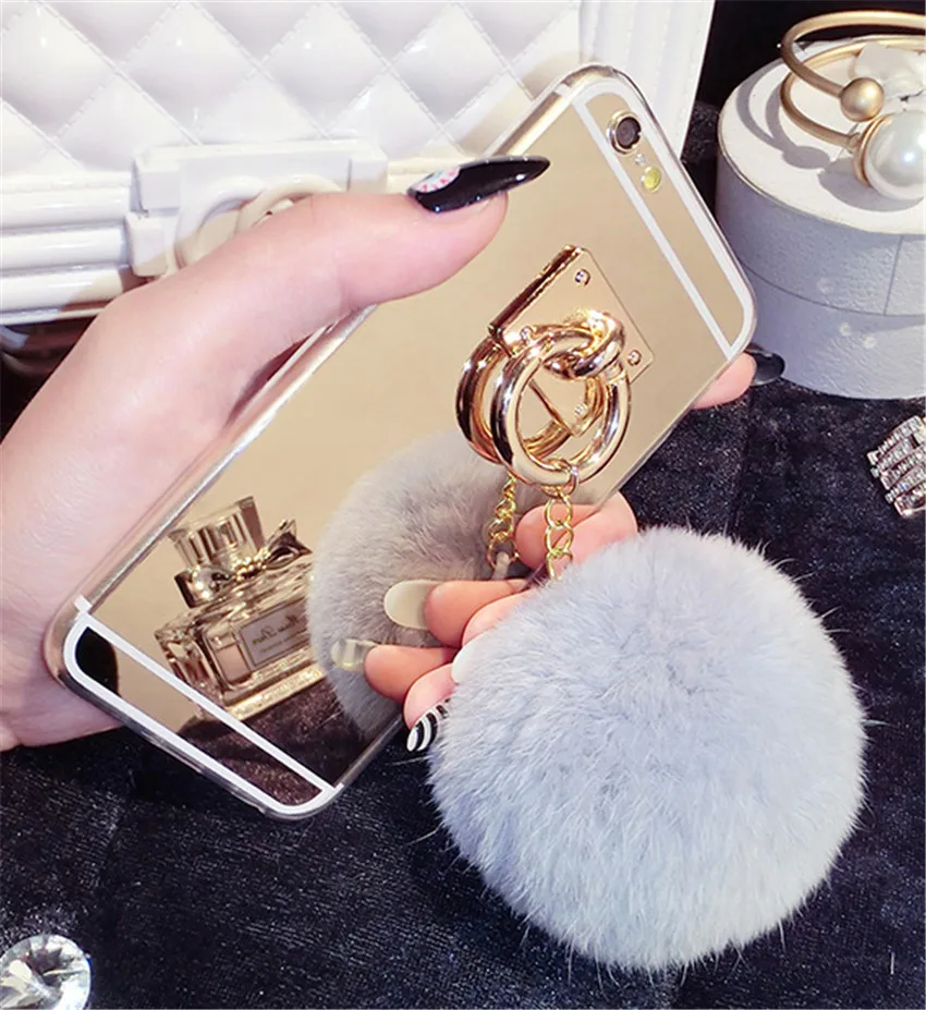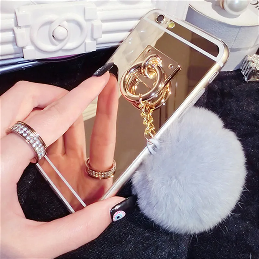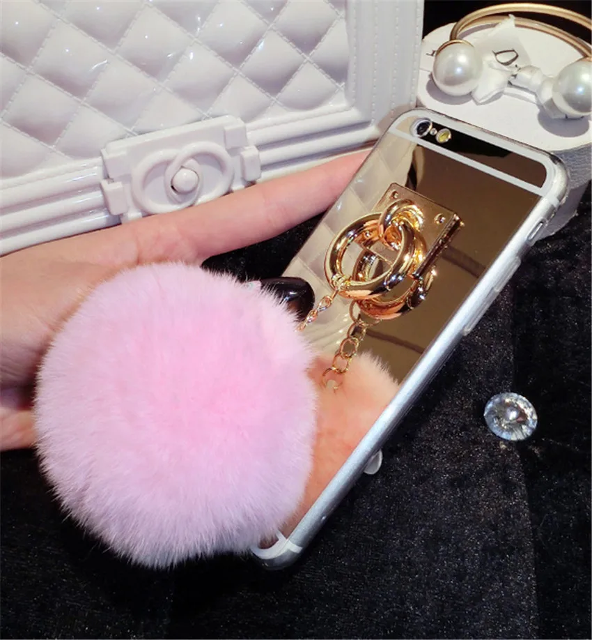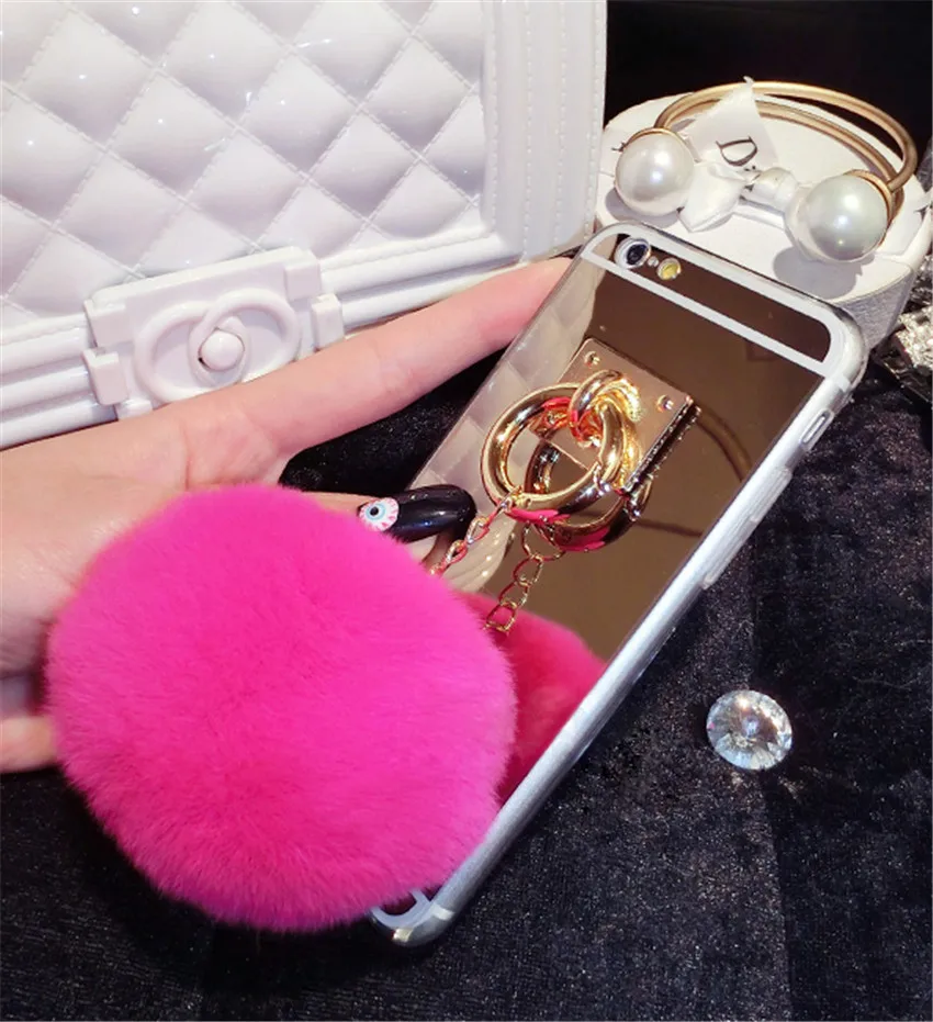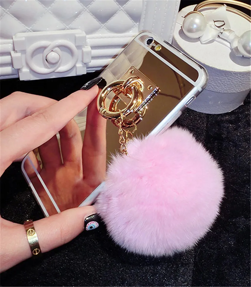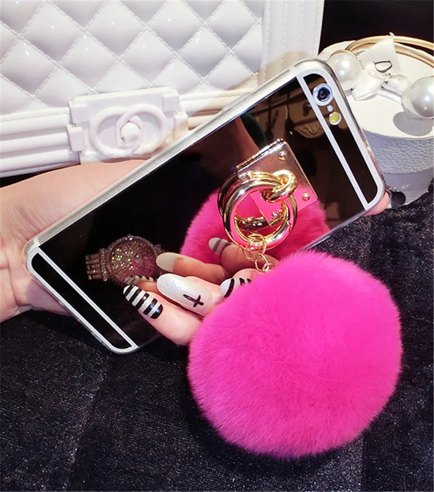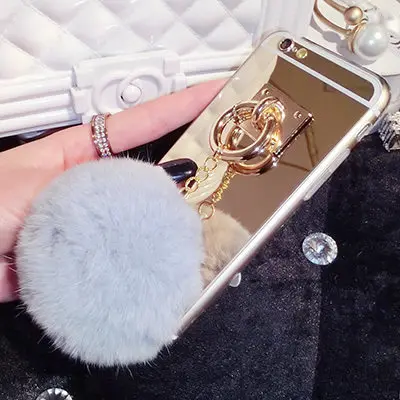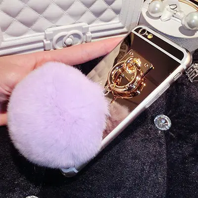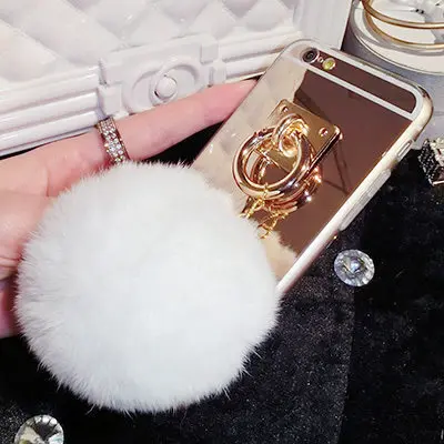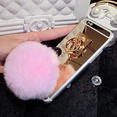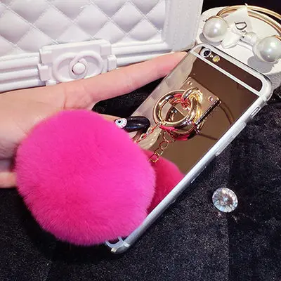 Features:Mirror Plush Rabbit Hair Ball Tassel Case