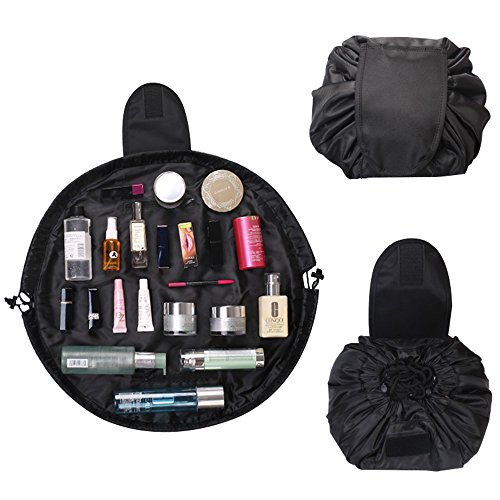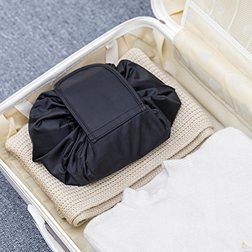 Lazy Quick Pack Drawstring Cosmetic Bag, Black Makeup Pouch Large Capacity Toiletry Bag for Women Girls, Portable and Waterproof