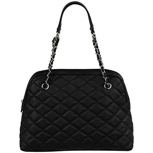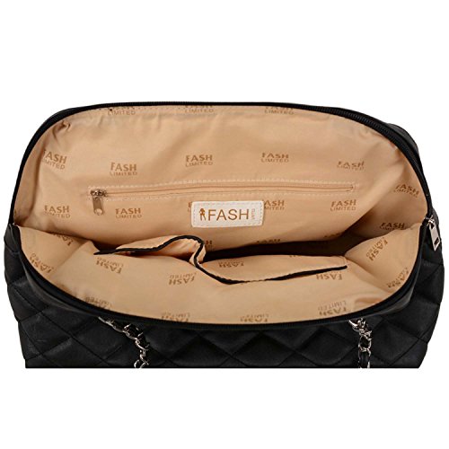 The Classic good looks and design of this quilted handbag by FASH makes it look more subtle and elegant. Perfect for office, casual outings or events, this bag is quite unique and sure to get you compliments. It not just has an appealing look or appearance but as a whole it is enriched with enduring quality. Crafted from durable faux leather the purse has a generously spaced fabric lined interior with open and zippered pockets for organized storage (for small essentials like keys, cell phone or money with other needed belongings). It unique Silver-toned Semi-Chained Shoulder straps along with the chain insets brings a different yet chic look to this bag. The combination of quilted leather with subtle sheen and silver-toned hardware brings out its elegance. The woven chain shoulder straps with leather inset is anchored by grommets and ensures free movement and comfort. Complete in terms of looks, quality and design the bag is suitable for almost any outfit and can be carried anywhere, be it a casual outing, an event or even for daily use, it's the best a woman can have. Available in two classy colors the bag is suited for all occasions. This elegant shoulder purse is stylish and a true value for money.*Due to monitor variations colors may appear slightly different.*
