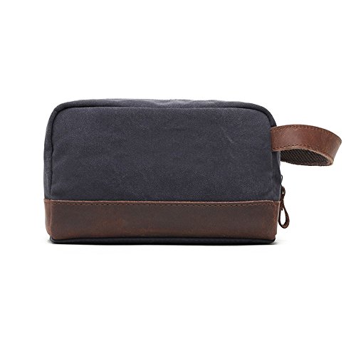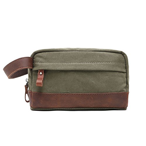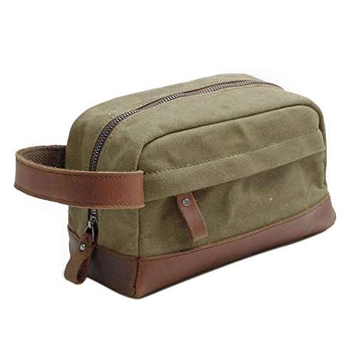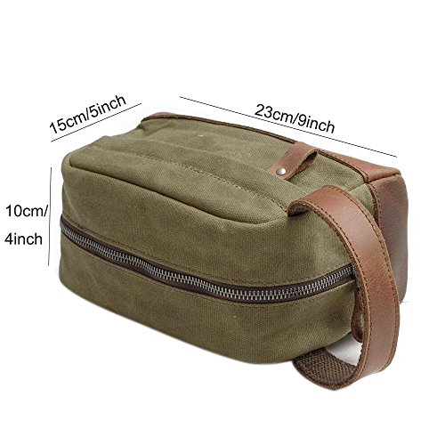 Vintage Leather Canvas Toiletry Bag Shaving Dopp Kit Cosmetic Makeup Bag for Men(Army Green)