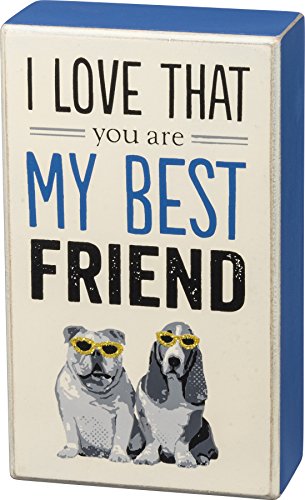 Primitives by Kathy Wood Box Sign Decor - I Love That You Are My Best Friend - Bulldog and Basset Hound Wearing Gold Glitter Sunglasses