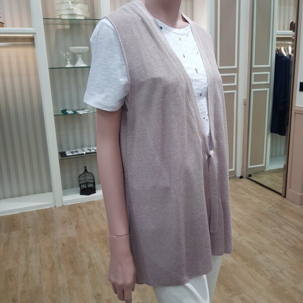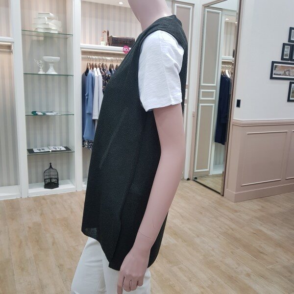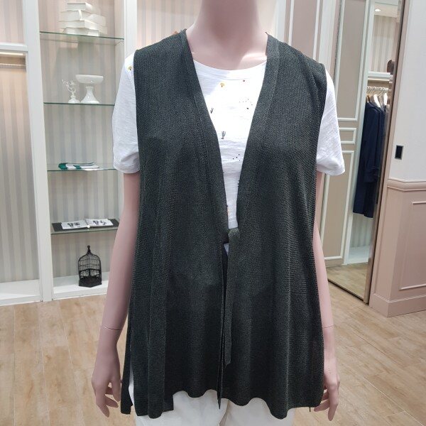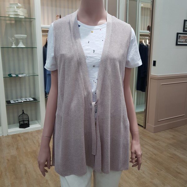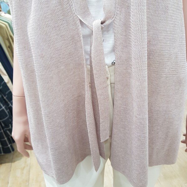 레이온75% 폴리25%니트베스트에요스트링 디테일로 앞단묶음이 가능~55기준 총장72cm