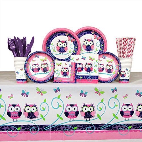 -. Title : Owl Pal Party Supplies Pack for 16 Guests: Straws, Plates, Napkins, Cups, Cutlery and Table Cover