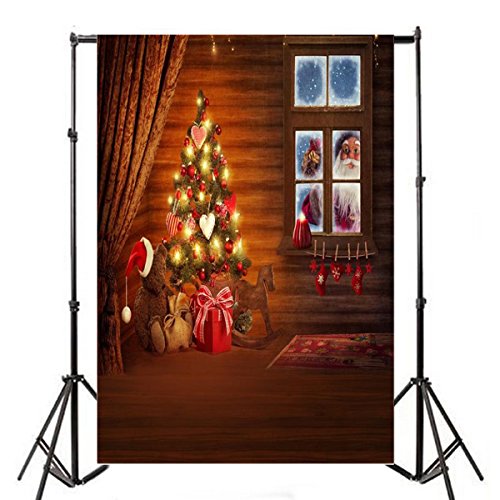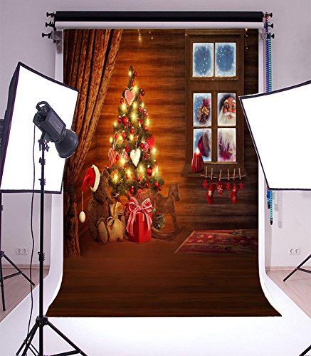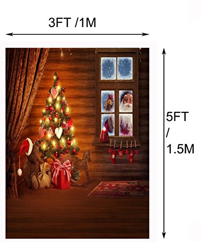 Laeacco Christmas Vinyl Backdrop for Baby and Children 3x5ft Merry Christmas Photography Background House Indoor View Scene Computer-printed Christmas Tree Gifts 1x1.5m Photo Studio Props