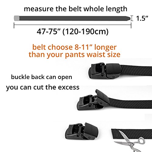 -. Feature : Belt 100% Real Polymide Nylon, smoothy, strong and durable. Belt width: 3.8cm (1.49'') / Top Quality YKK POM buckle, can bear strong strenght. Buckle: 4.8*5cm (1.88x1.96 inches) / Real Plus Size Long Belt: 51'' 55'' 59'' 63'' 67'' 71''(130cm 140cm 150cm 160cm 170cm 180cm) / Non metal design, environmental, lightweight and easy to go through secury check. / Non holes design, full adjustable