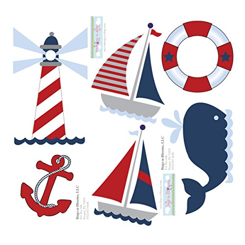 -. Feature : Red White Blue Nautical Wall Mural Sticker Removable Childrens Room Baby Nursery Vinyl Decals. Stickers for Children's, Nursery & Baby's Room Decor, Baby Wall Decals, Boys Bedroom Wall Decorations, Child's Murals. Baby Shower Stickers / Ideal for Baby Nursery Kids Bedroom Boys Room. Wall mural stickers - instant decoration. Our exclusive boats, whale, light house, anchor & life preserver wall sticker sheet includes six pre-cut adorable wall stickers that just peel & stick for instant designer look! Decorative wall stickers for boys are the latest trend in kids room decor! Wall decals are a quick way to decorate a little boy's bedroom, nursery or playroom. Colors are red, white, light blue, navy blue & gray (grey). / Your little sailor or fisherman would love these decals in his room. Each sheet has 6 stickers, P.R.Ice per sheet. You will receive one (1) sheet that has: (2) sail boats, (1) life preserver, (1) light house, (1) anchor and (1) whale. Measurements are approximately: Light House 4 1/4" W x 6 3/4" H, Anchor 3" W x 3 1/2" H, Life Preserver 4 1/4" W x 4 1/4" H, Whale 6 1/2" W x 4 1/4" H, Stripped Red Sailboat 4 1/2" W x 5 1/2" H, Solid Red Sailboat 4 1/4" W x 6" H. / Wall decals are recommended for smooth, dry, clean, & flat surfaces. Peel & stick wall stickers are perfect for any boys nautical or ocean themed room or nursery. Removable without damaging the stickers or walls. Coordinating wall alphabet letter name stickers, mural decals, quote sayings, & growth charts are available in our store. Visit our Amazon store for more great items: www.amazon.com/shops/Bugs-n-Blooms / SEE STORE POLICIES: regarding wall stickers, due to the customization, delicate and fragile nature. Please contact us if you have any questions and be sure to visit our 'How To Apply Wall Stickers' page for more information P.R.Ior to purchasing: http://www.amazon.com/gp/aag/details/ref=aag_m_fi?ie=UTF8&asin=&isAmazonFulfilled=&isCBA=&marketplaceID=ATVPDKIKX0DER&orderID=&seller=A2RFZLVKNCOP5I#custom1