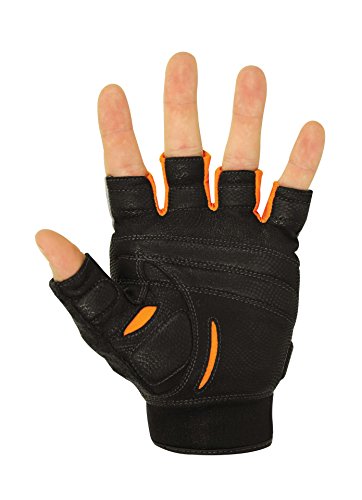 -. Binding : Sports -. Brand : Bionic -. Color : Gray -. Department : Mens -. Feature : PREVENT FATIGUE AND INCREASE STRENGTH - PATENTED ANATOMICAL PAD RELIEF SYSTEM AND GENUINE LEATHER PALM - Strategically placed relief pads even out the surface of your hand displacing the pressure from your workout. / GET THE PERFECT GRIP - PATENTED DESIGN - The Bionic Glove pre-rotated finger design adapts to your hand's natural curving motion. This patented design gives you a more effortless and comfortable grip that allows you to power through any workout. / DON'T SWEAT IT - PERSPIRATION MANAGEMENT - Wipe away sweat with The Polytowel thumb and reach your goal. The terrycloth pads inside the gloves are strategically placed in high risk areas to manage your perspiration. Machine wash no bleach, air dry. / KEEP A COOL HAND - MAXIMUM BREATHABILITY - By using the premium material Cool-On for the back of the glove and Lycra between the fingers and flexion zones, these gloves offer maximum breathability and flexibility for your workout. / DURABLE - The Genuine leather palm gives this glove a long lifespan, no matter how many reps you put them through. -. Label : Bionic Gloves -. Manufacturer : Bionic Gloves -. Model : FCTMM-P -. MPN : FCTM -. PackageQuantity : 1 -. PartNumber : FCTM -. ProductGroup : Sports -. ProductTypeName : SPORTING_GOODS -. Publisher : Bionic Gloves -. Studio : Bionic Gloves -. Title : Bionic Glove Men's Cross-Training Fingerless Gloves w/ Natural Fit Technology, Gray/Orange (PAIR)