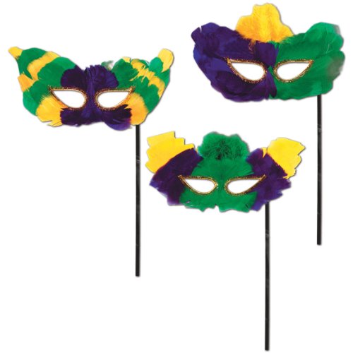 Beistle 54209 Mardi Gras Fanci-Feather Masks with Stick