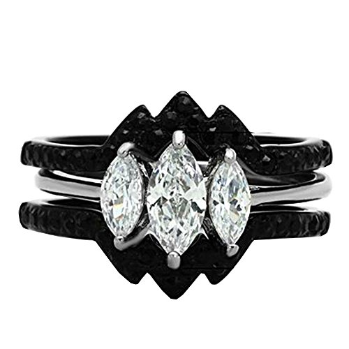 - Title : His And Hers Wedding Ring Set Marquise Cubic Zirconia Black Stainless Steel And Titanium 4 Pieces SPJ