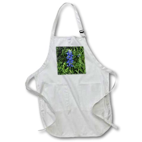 3dRose apr_21052_1 Bluebonnet Full Length Apron with Pockets, 22 by 30", White