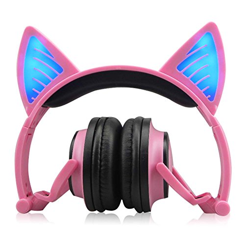 Wireless Bluetooth Cat Ear Headphones with Glowing Lights ( Pink )
