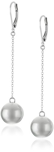 Rhodium Plated Sterling Silver Drop Lever Back Ball Earrings