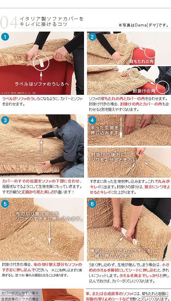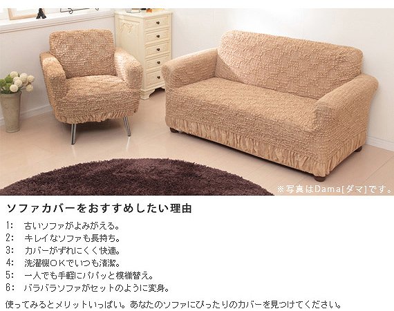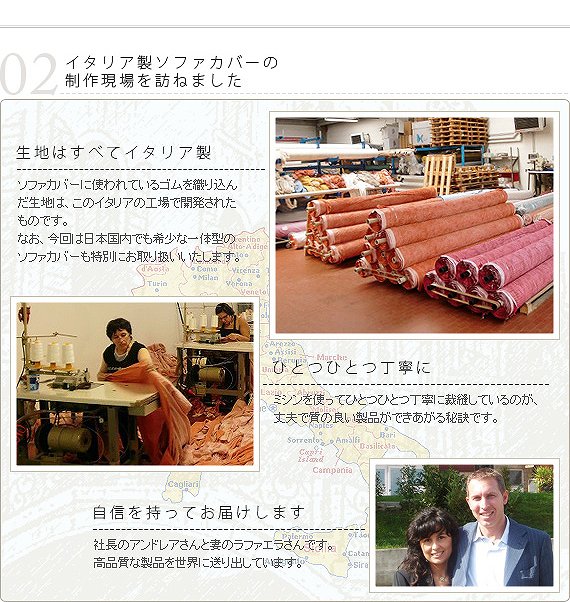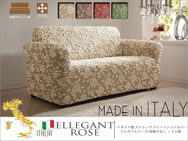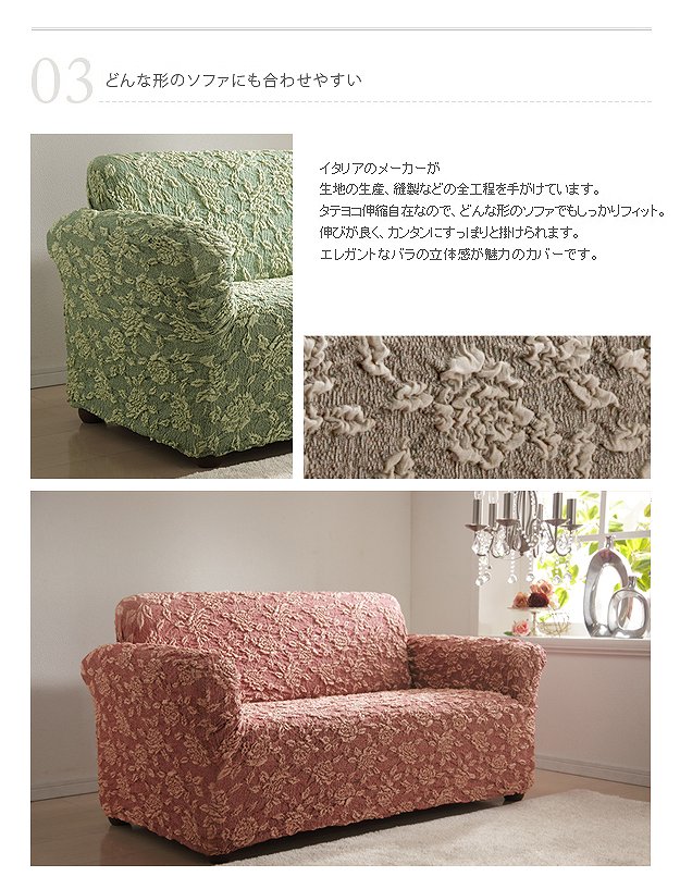 ●商品について:イタリア製の生地を使用したストレッチ素材のソファカバー。ストレッチの強弱によりエレガントなローズ柄が浮かび上がります。