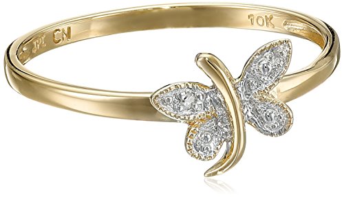 -. Title : 10k Yellow Gold Dragonfly Ring with Diamond-Accent, (0.005 cttw, I-J Color, I2-I3 Clarity), Size 7