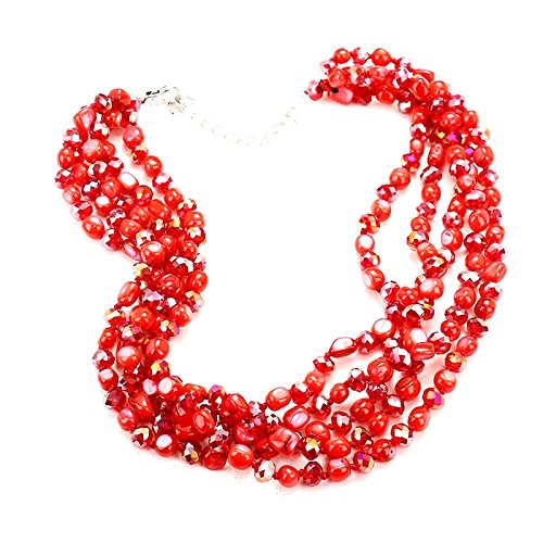 Simple Elegant Chunky multi layered Mixed Glass Shell Beads Size 18" + 3" chain extension long chain lobster clasp closure