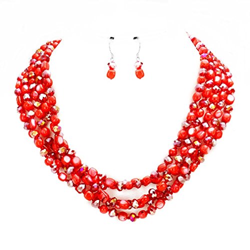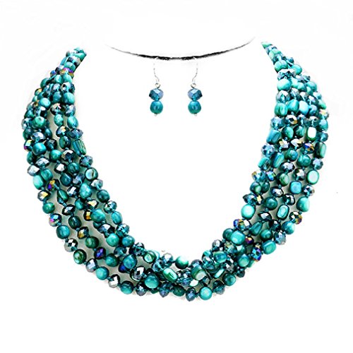 Gorgeous statement layered mixed beads strands necklace matching hook earrings set. Elegant costume Jewelry.