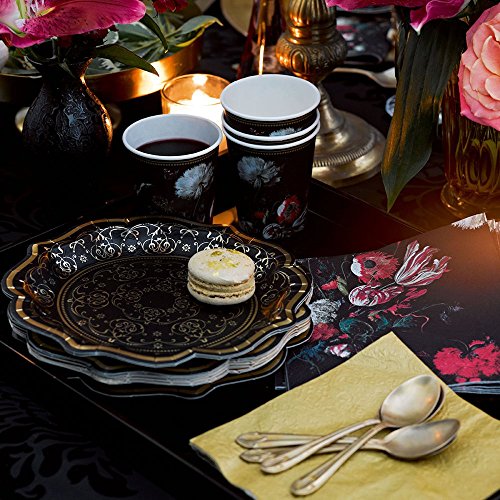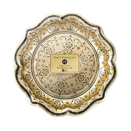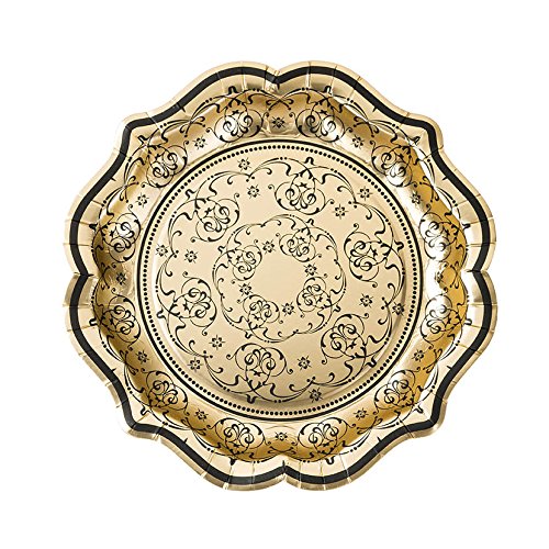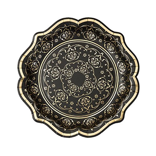Talking Tables Porcelain Baroque Paper Foiled Party Plates, 12 count, 8.5", Black/Gold