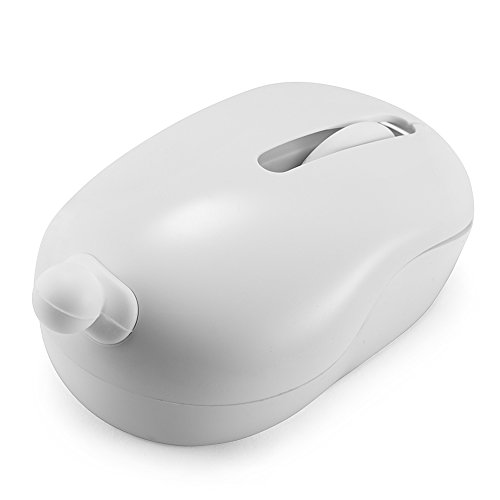 Sungwoo Wireless Optical Mouse 2.4GHz Mini Computer Mice with Cute Animals Tails Receiver for PC Laptop Desktop Notebook (White)