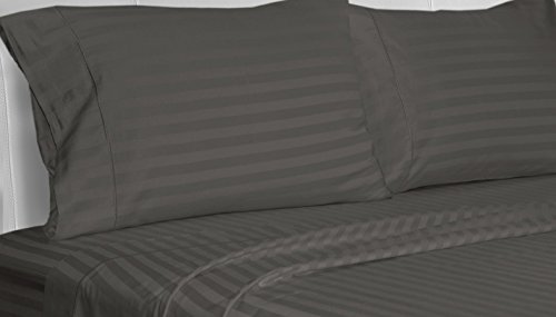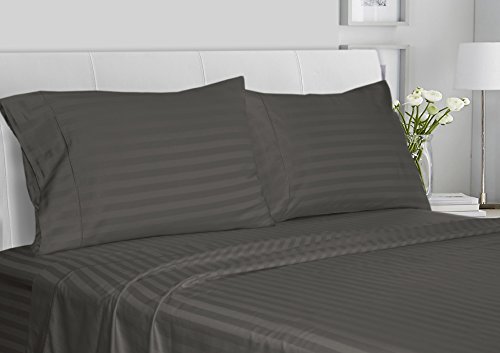 Chateau Home Collection Luxury 100% Supima Cotton 500 Thread Count Ultra Soft Damask Stripe Sheet Set, Mega Sale - Lowest Prices, Queen - Charcoal