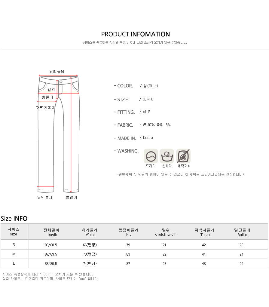 청 한컬러와 S,M,L 까지 준비된 사이즈!