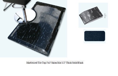Rhino Mats BTT-6060RSB Marbelized Vinyl Tile Top Beauty Salon Rectangle Mat, 5' Width x 5' Length x 1/2" Thickness, Solid Black