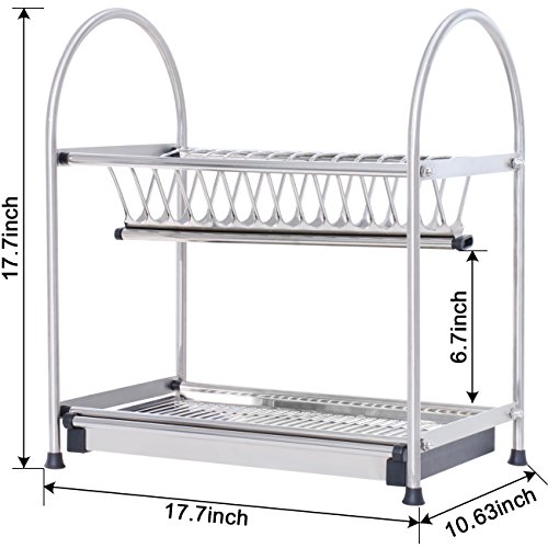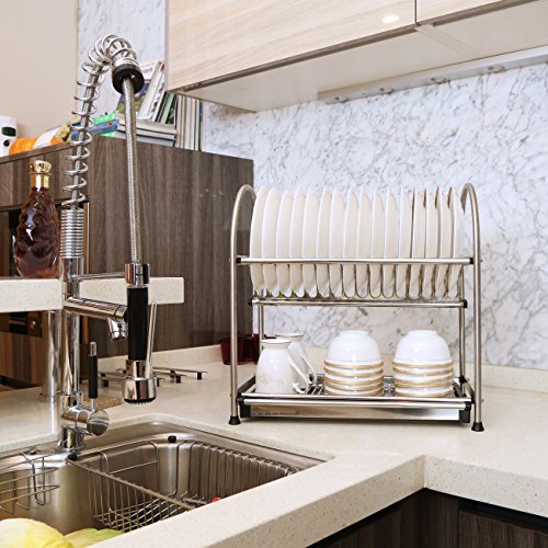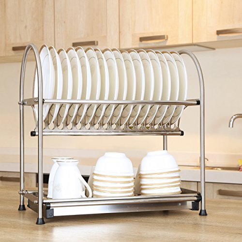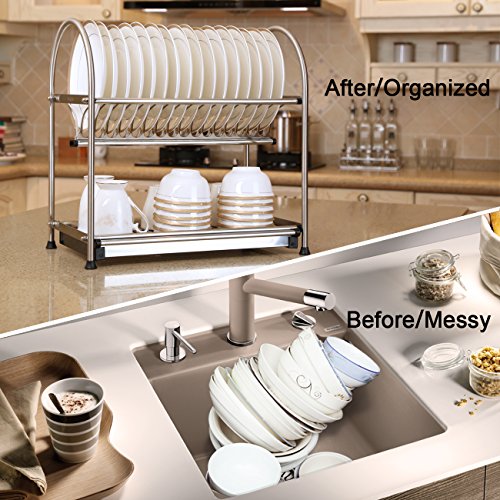 【2-tier Dish Rack】make cutlery and cups organizing and easy reaching,dry your kitchenware quickly to prevent the growth of bacteria.